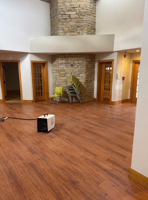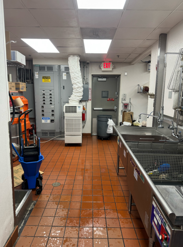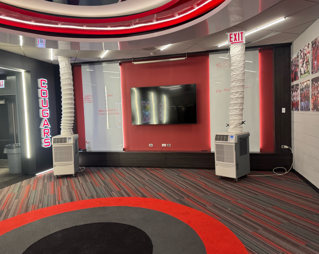 When the Mini-Split inside the server room failed, Porta-Air received a call to install a portable spot cooling unit, Office Pro 18 to overcome the heat load being generated by the servers. The air conditioning rental unit was installed using a condensate pump, where the pump condensate line was run 9 feet vertically and 100 feet horizontally above the ceiling to the water drain. A condensate pump was necessary so the unit would provide cooling continuously, 24/7. If a condensate bucket were used, in place of the pump, it would fill-up quickly with condensate and disable the compressor, thus no cooling.