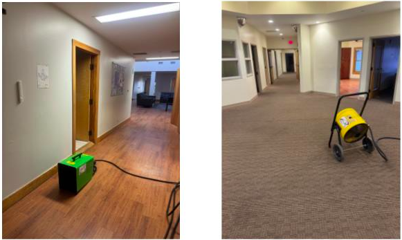 Installation of a 3-ton, self-contained, portable air-cooled unit in a server room before the transfer of the server hardware to Batavia, IL. For this application, the water drain is conveniently located in the floor for the condensate pump water removal.