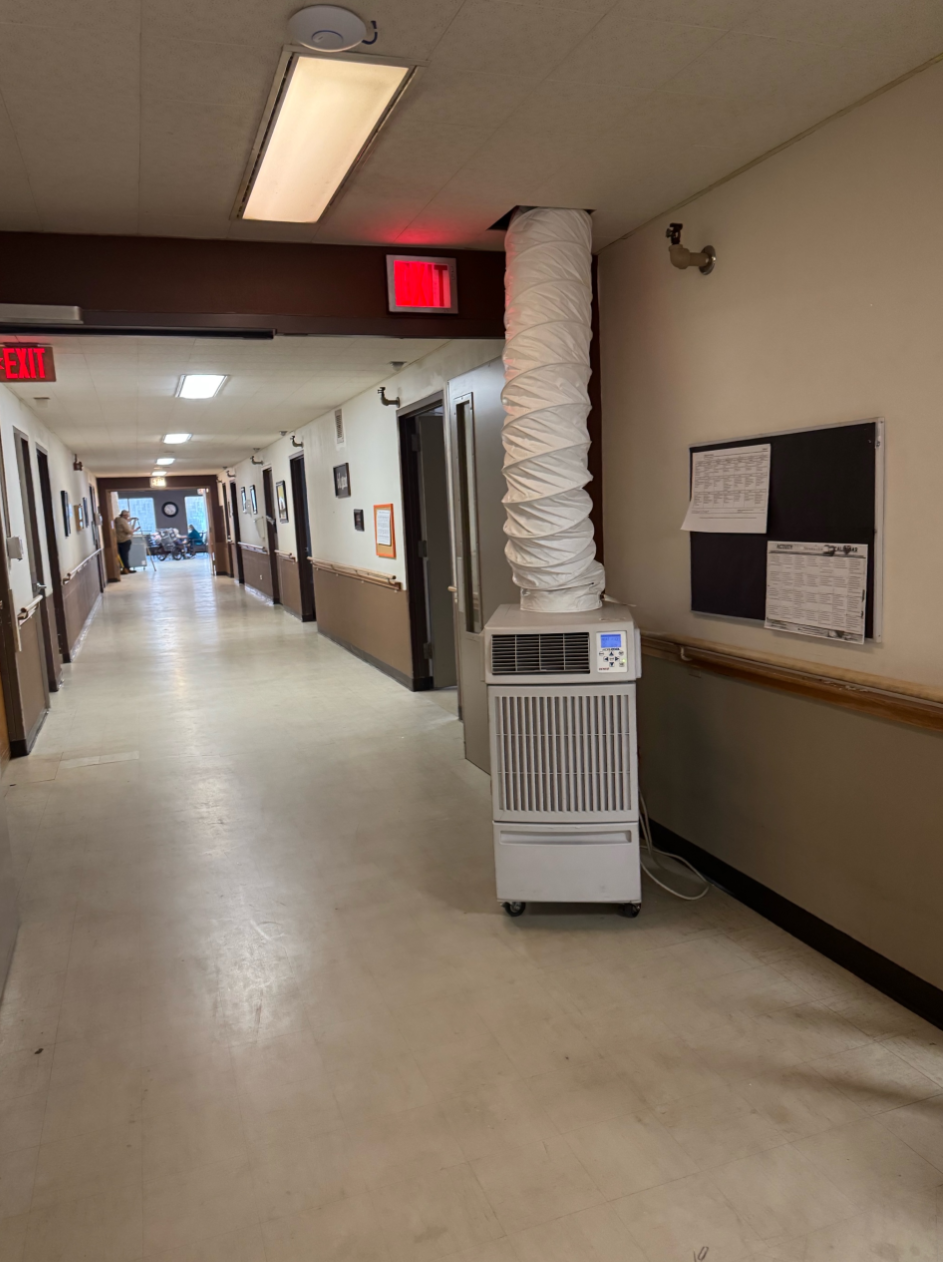 A Small Server Room along the Magnificent Mile in Chicago, IL 60611 Utilizing a Movincool Climate Pro 18 Air Conditioner Rental A mechanical contractor in Cook County, Illinois, sought a temporary spot cooling rental unit for their customers small server room closet in early Spring 2025. The server rooms tight space made it challenging to take a photo of the complete setup. After the cooling rental was operational for 10 minutes, the temperature inside the server room stabilized and reached an acceptable level. Whenthe primary AC unit supplying cooling to the server room fails, temperatures can rise rapidly, sometimes necessitating the shutdown of servers to prevent hardware damage.